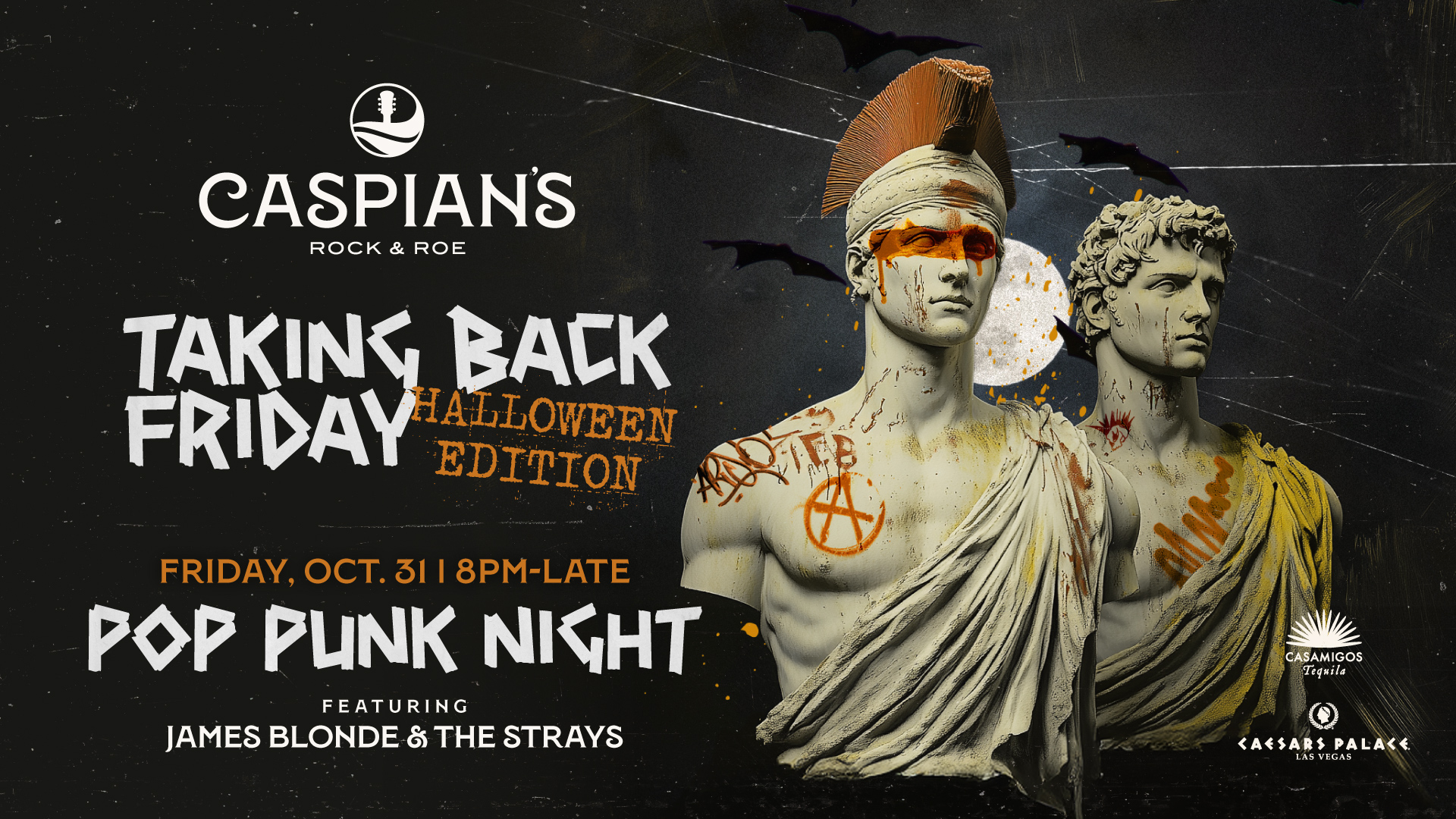 — look no further than the ever-intriguing Caspian's Rock & Roe at Caesars Palace. This year, we’re doubling down on the atmosphere with a full week of themed events leading up to and including Halloween night. From pirate curses to pop-punk anthems, we’ve got something for every kind of night-owl. Why Caspian’s is The Spot for Live Music & Halloween Fun